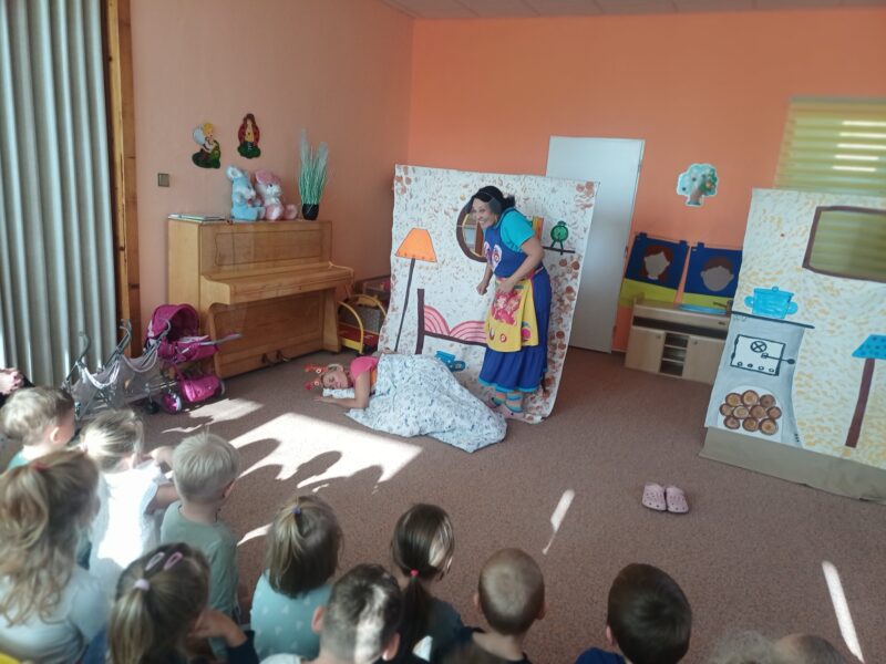 Ve čtvrtek 23.října 2025 k nám do MŠ Těškovice zavítalo Divadlo Ententýky s pohádkou Veverka Terka poprvé ve školce. Děti s nadšením sledovaly příběh malé veverky, která se poprvé vydala do školky a zažila spoustu nových dobrodružství. Nechyběly veselé písničky, humor ani zapojení dětí do děje. Pohádka dětem přiblížila, že do mateřské školy se dá chodit s radostí a že nové věci mohou být zábavné.