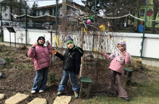 Děti ze školní družiny se s nadšením pustily do velikonoční výzdoby školní zahrady. S příchodem jara