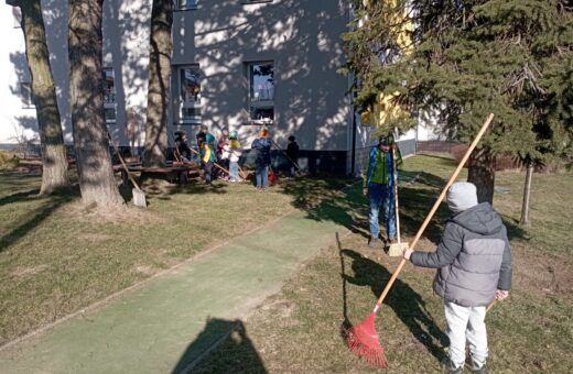 Děti ze školní družiny se s příchodem jara pustily do úklidu školní zahrady. Po zimních měsících byl